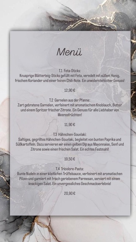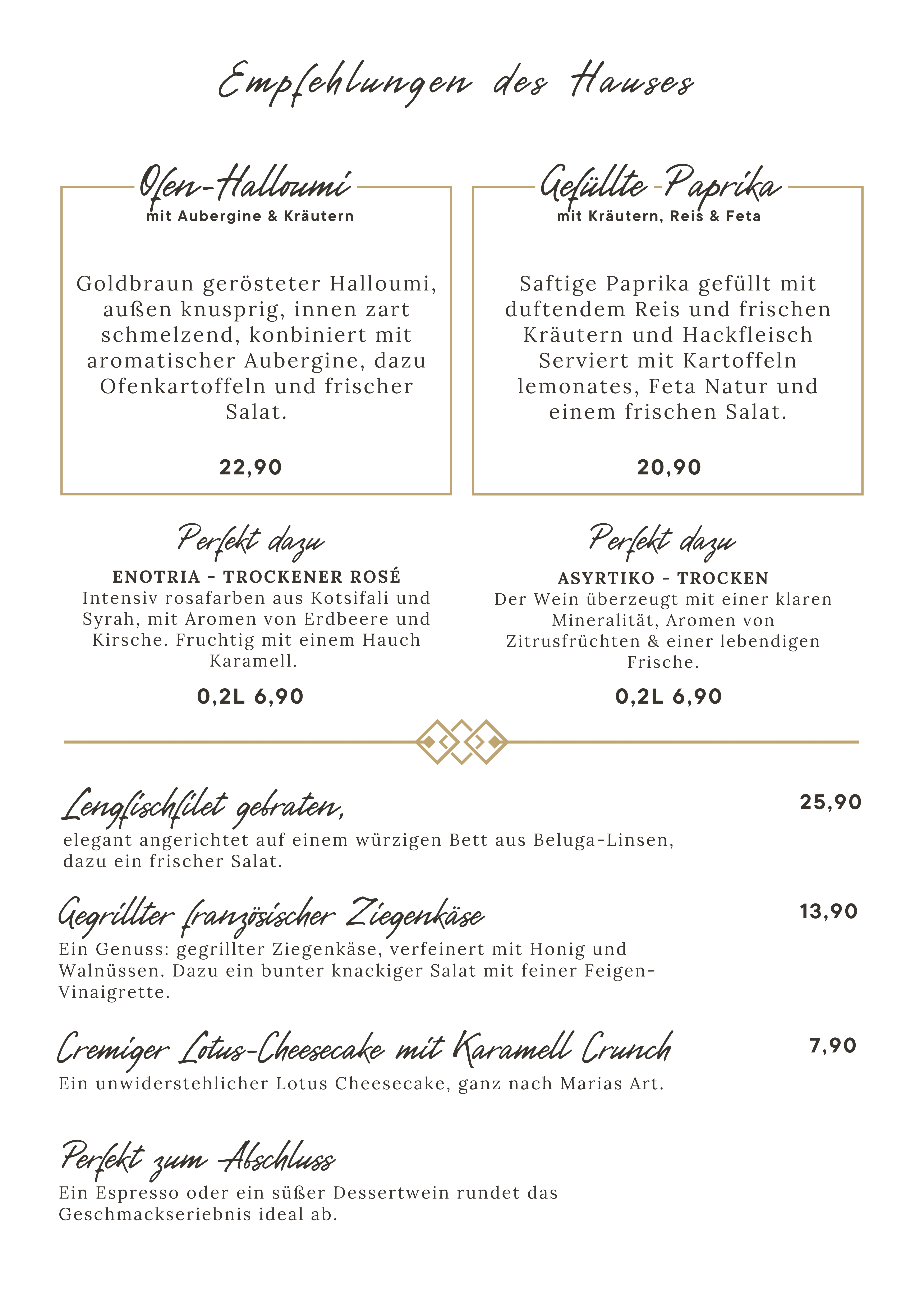 Wir freuen uns, Sie in unsere griechische Küche und Kultur einzuführen und Sie auf eine kulinarische Reise mitzunehmen.